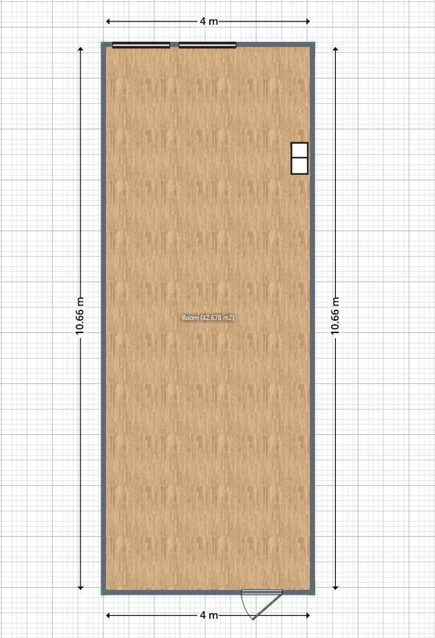 Dimensiones Óptimas: Un espacio amplio y rectangular de 4 x 10.67 metros, ofreciendo $42 m2 de uso eficiente.