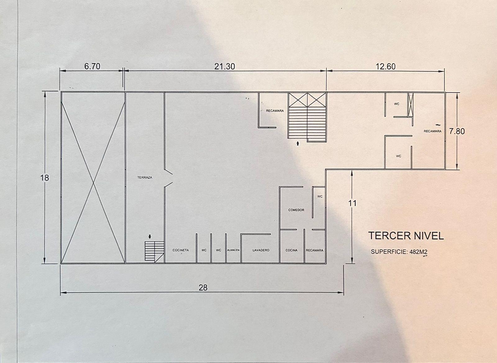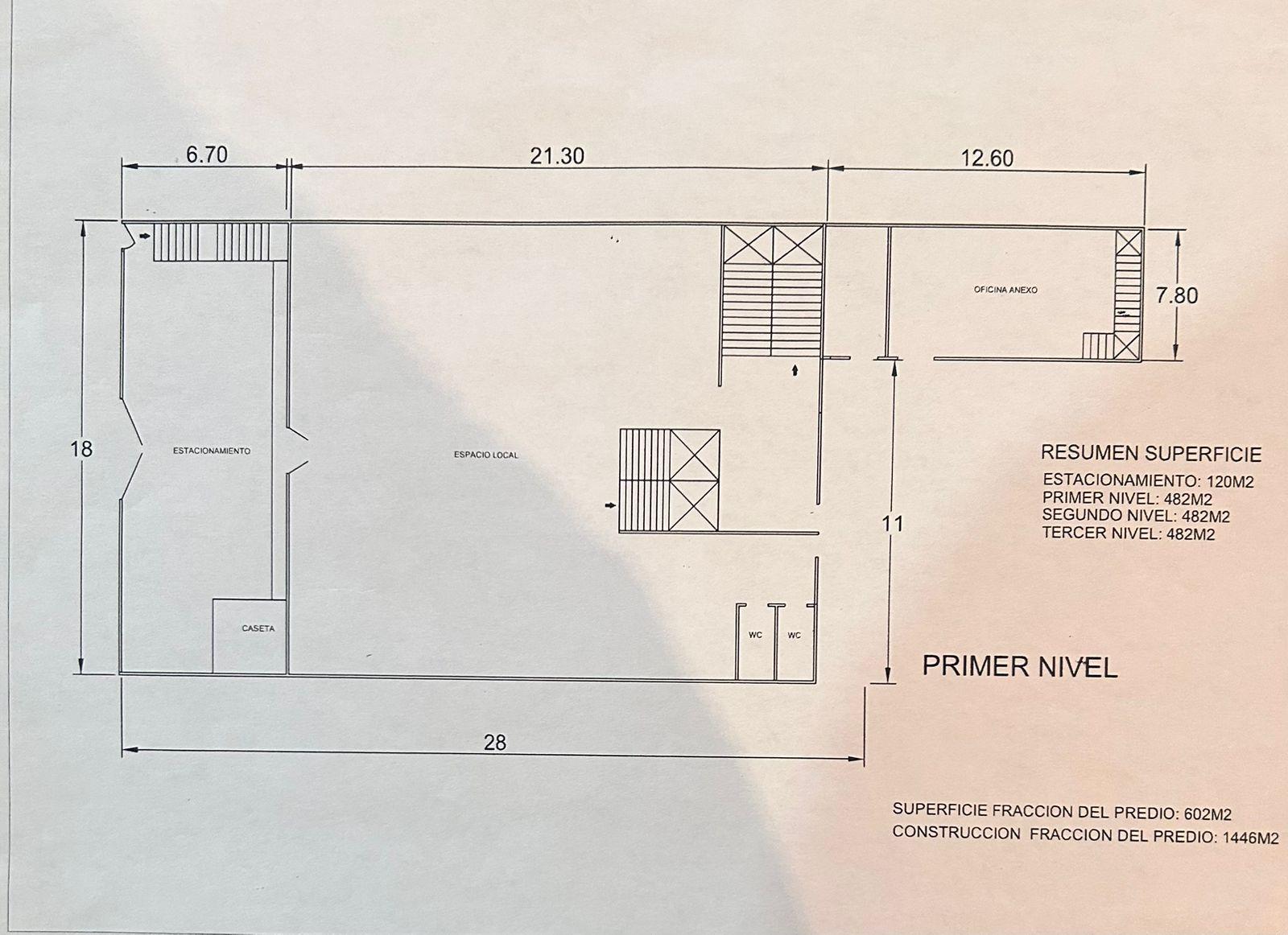 Construcción: Edificio de tres niveles, 1er. Nivel con local comercial de 482m2 con estacionamiento para clientes o visitas, 2do. Nivel con bodega de 482m2. 3er. Nivel con Pent-House de 600m2 con amplias habitaciones, salón de eventos familiares y terraza. Todos lo niveles pueden convertirse en oficinas y/o bodega.